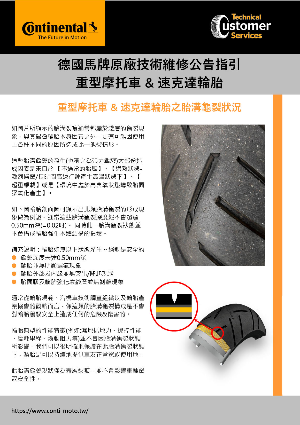 一般機車用胎常見<胎溝龜裂>德國原廠公告指引